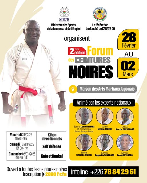 La Fédération Burkinabè de Karaté-Do a l’honneur d’annoncer que Wilfried KABORE, 11 fois champion national, 5 fois champion d’Afrique de l’Ouest, Médaillé de Bronze au Championnat d’Afrique à Casablanca et meilleur karatéka de l’année 2023 au Burkina Faso, a été reçu dans la soirée du 27 février 2025 par Mikaïlou SIDIBÉ, Ministre en charge de […]